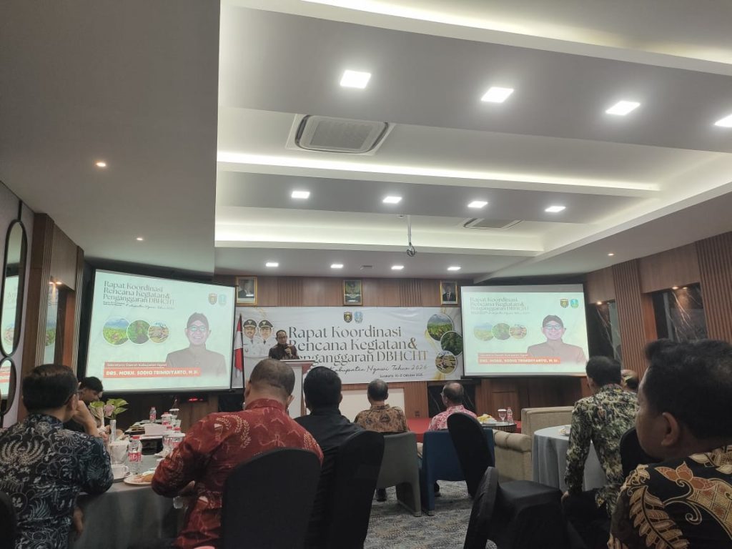 Surakarta, 30–31 Oktober 2025 — Dalam rangka mempersiapkan pelaksanaan program Dana Bagi Hasil Cukai Hasil Tembakau (DBHCHT) Tahun Anggaran 2026, Bagian Perekonomian Sekretariat Daerah Kabupaten Ngawi menyelenggarakan Rapat Koordinasi Rencana Kegiatan dan Penganggaran DBHCHT Kabupaten Ngawi di Hotel by Nata Azana Surakarta.